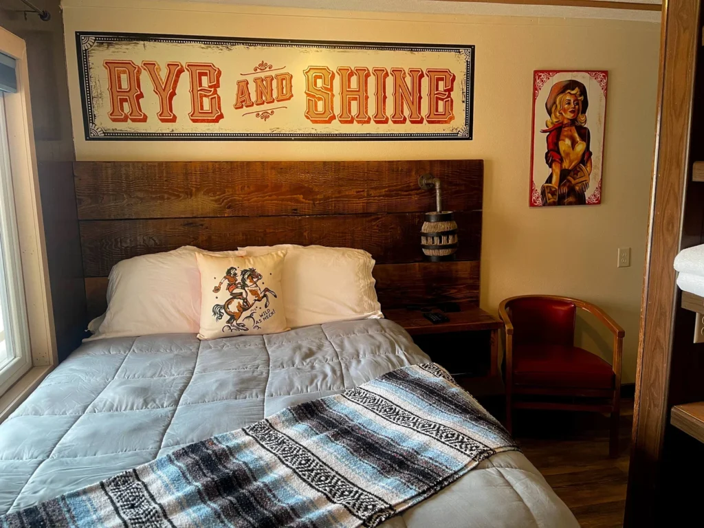 A cute little inn located right across the street from a “fancy but not fancy” establishment where you can enjoy local steaks, handcrafted sandwiches, unique cocktails and wonderful company at a historic eatery. The Stumble Inn has 5 rooms: The Whiskey Room ("Rye & Shine!"), the Gin Room, the Vodka Room, the Tequila Room, and the Roy Rogers Room!